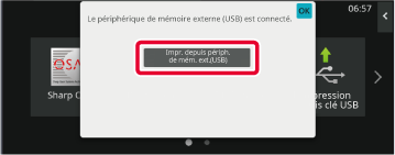 Lorsqu'un écran de sélection de l'action s'affiche, appuyez sur [Impr. depuis périph. de mém. ext.(USB)].