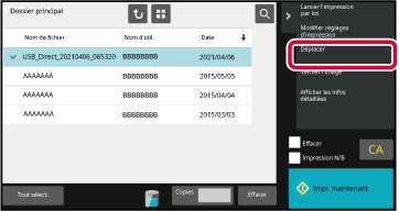Appuyez sur la touche du dossier dans lequel vous souhaitez déplacer le fichier.