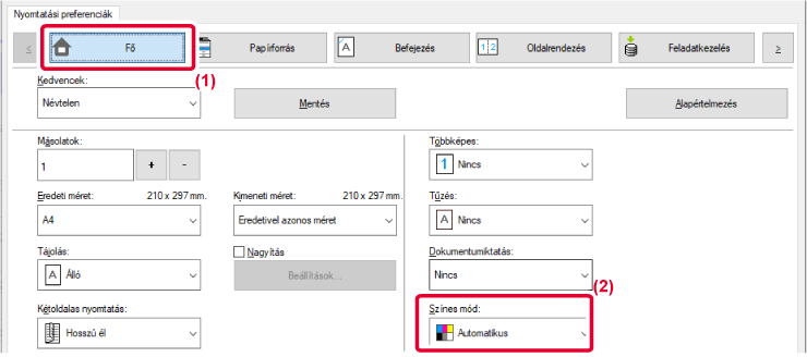 A "Színes mód" (nyomtatásra használt színkészlet) a következő három lehetőség közül