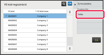 Koppintással válassza ki a törölni kívánt fő kódot, majd koppintson a műveleti panelen a [Törlés] gombra.
