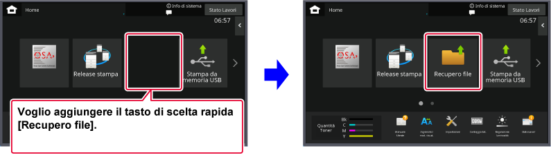 Le impostazioni vengono salvate nella macchina e applicate.Questa sezione spiega come cambiare un tasto di scelta rapida nella schermata iniziale.