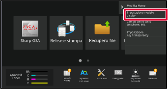 Aprire il pannello operativo nella schermata iniziale, quindi toccare [Impostazione modello display].
