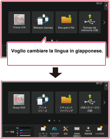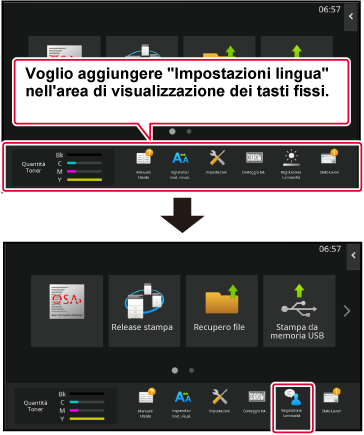 Le impostazioni vengono salvate nella macchina e applicate.È possibile cambiare i tasti fissi. È possibile cambiare i tasti fissi dalla pagina