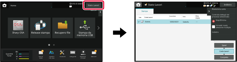 Quando si tocca il display dello stato del lavoro, viene visualizzata la schermata
