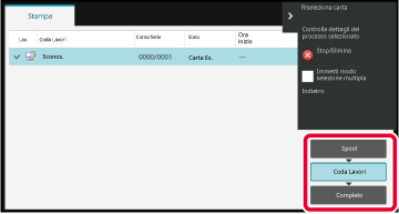 toccare il tasto [Spool], [Coda Lavori] o [Completo], in base alle esigenze.