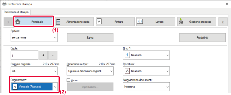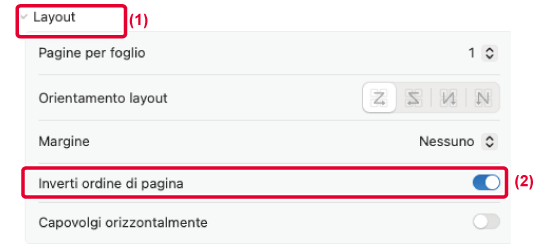 Questa funzione consente di ruotare l'immagine di 180 gradi per consentire una stampa