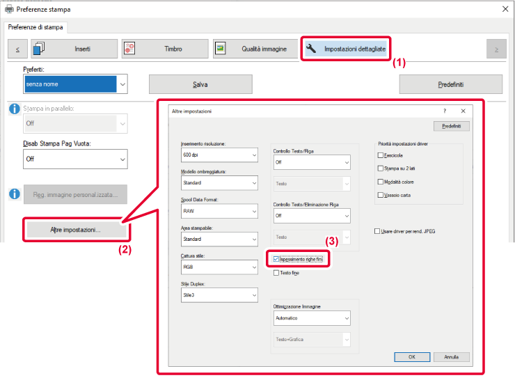 Questa funzione consente di aumentare lo spessore delle righe stampate nel caso in