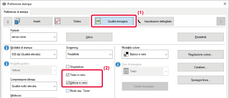 .Nel driver della stampante sono disponibili impostazioni predefinite per il colore
