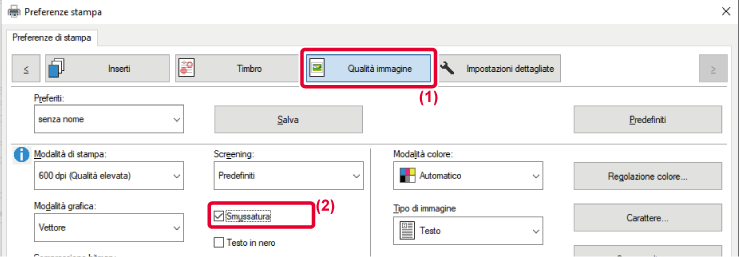 - Selezionare [Qualità immagine] da "Opzioni stampante".
