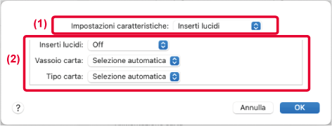 - In macOS 12 e versioni precedenti, selezionare [Caratteristiche stampante] e successivamente
