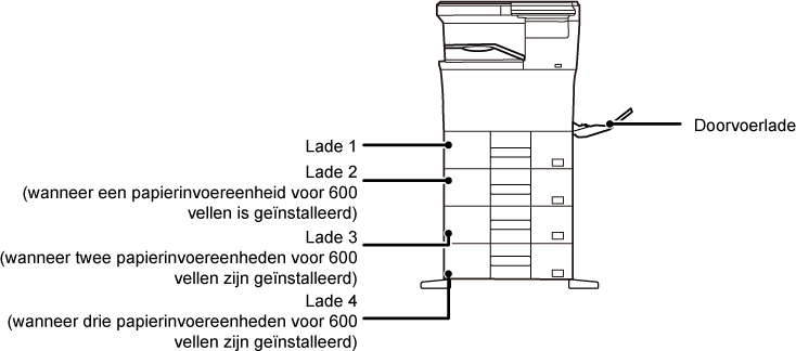 | Lade | Normale toestand | Met briefpapier of voorbedrukt papier geplaatst |