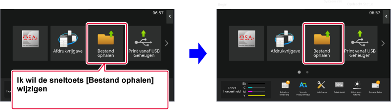 Om de sneltoets te wijzigen via het aanraakscherm, verplaatst u de sneltoets uit de