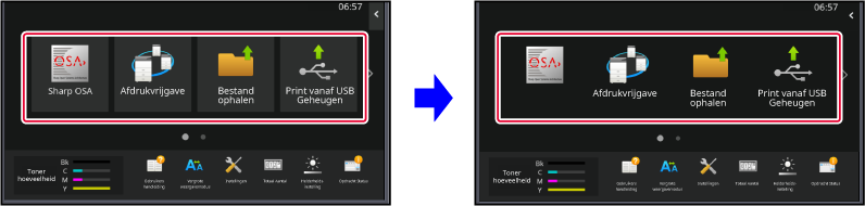 De instellingen worden opgeslagen in het apparaat en worden toegepast.In dit gedeelte wordt uitgelegd hoe u een sneltoets in het beginscherm kunt verplaatsen.
