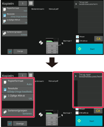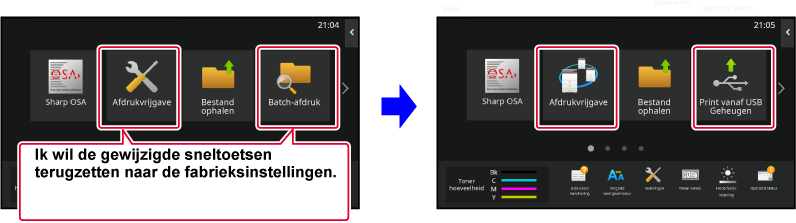 De instellingen worden opgeslagen in het apparaat en worden toegepast.In dit gedeelte wordt uitgelegd hoe u een sneltoets in het beginscherm kunt wijzigen.