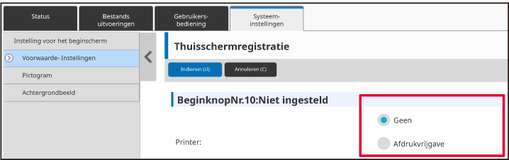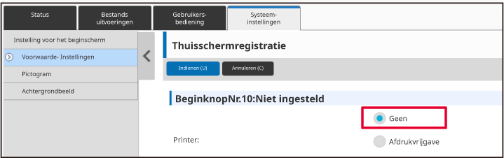 Wanneer u op de knop [Indienen] klikt, wordt het scherm [Thuisschermregistratie] gesloten.Wanneer u klaar bent met het aanpassen van instellingen, klikt u op de knop [Indienen].