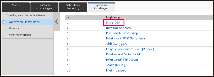 Tik op → [Systeem- instellingen] → [Instelling voor het beginscherm en vervolgens op de toets [Home knoppositie].
