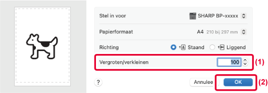 wordt weergegeven.Met deze functie vergroot of verkleint u de afbeelding met een geselecteerd percentage.