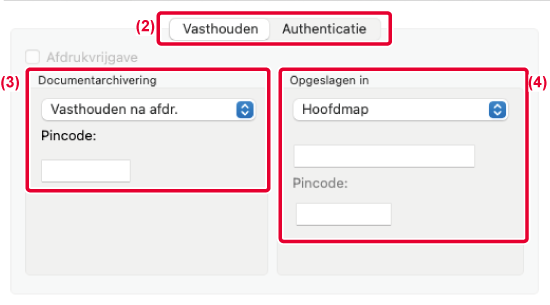 - Bij het afdrukken van gearchiveerde documenten moet u, naast de gebruikersauthenticatiegegevens,