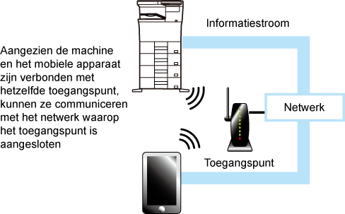 Het apparaat en mobiele toestel communiceren rechtstreeks via Wi-Fi. In deze modus
