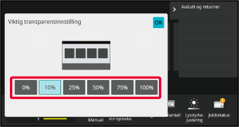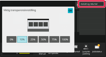 Innstillingene lagres i maskinen og tas i bruk.Du kan endre gjennomsiktigheten for snarveistastene.