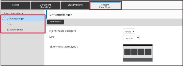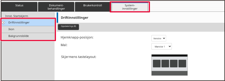 Klikk på [Driftinnstillinger] og velg ønsket oppsettsmønster fra "Mal".