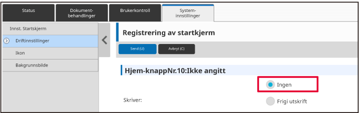 Når du klikker på [Send]-knappen, lukkes [Registrering av startkjerm]-skjermen.Når du er ferdig med å konfigurere innstillingene, klikker du på [Send]-knappen.