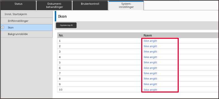 Bare navnet kan endres fra berøringspanelet. Du kan endre ikonbildet fra nettsiden.