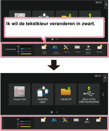 Åpne handlingspanelet på hovedskjermen, og trykk på [Endre tekstfarge på startskjerm].