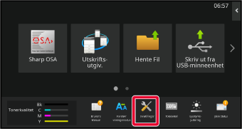 Når USB-enheten er koblet til maskinen vil et popup-vindu vises. Trykk på [OK]-tasten.Trykk på [Innstillinger]-tasten på hovedskjermen.