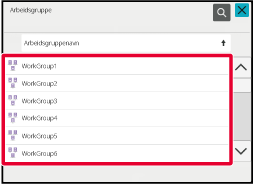 Gå til nettverksmappen.Trykk på tasten for arbeidsgruppen du vil ha tilgang til i trinn 3 av "SKRIVE UT EN FIL I NETTVERKSMAPPEN DU HAR KONFIGURERT I MASKINENS INNSTILLINGER".