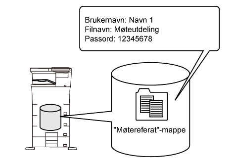 En tidligere opprettet brukerdefinert mappe kan velges som "Min mappe", eller en ny mappe kan opprettes som "Min mappe". Når "Min mappe" er konfigurert og brukerautentisering benyttes, vil "Min mappe" alltid velges som destinasjon for [Fil] og [Lagre Fil]. |