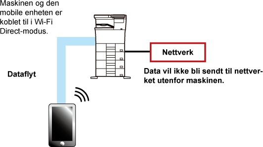 Maskinen og mobilenheten kommuniserer direkte via Wi-Fi. I denne modusen er kommunikasjon