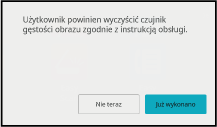Naciśnij przycisk "Nie teraz", aby kontynuować drukowanie, jednak w przypadku dalszego korzystania z drukarki z zabrudzonym czujnikiem gęstości obrazu wydrukowany obraz może być rozmazany.Wyłącz urządzenie.