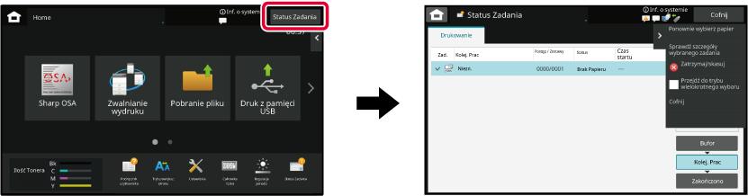 Po naciśnięciu ekranu statusu zadania pojawi się okno statusu zadania. Naciśnij je