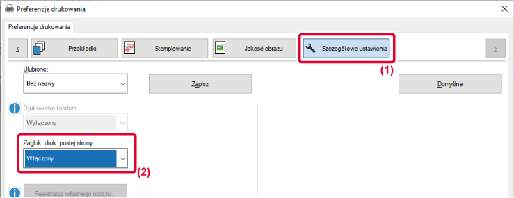 - Wybierz ustawienie [Włączony] dla opcji [Zablok. druk. pustej strony].