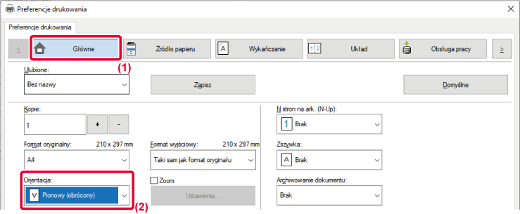 Ta funkcja obraca obraz o 180 stopni, dzięki czemu możliwy jest jego prawidłowy wydruk