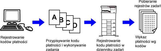 Jest wykorzystywany w celu klasyfikowania rezultatów wykonanych zadań drukowania, umożliwiając wydajne zarządzanie. Przykładowo możesz przypisać kod według użytkownika i pobrać zapisane w dziennikach zadań informacje dotyczące kosztów według klienta. Przykładowy kod: Publikacja firmy A |