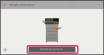 W przypadku zacięcia papieru na wyświetlaczu panelu dotykowego pojawi się komunikat