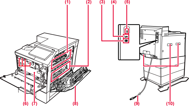 Não toque na correia de transferência nem a danifique.Ligue o cabo de rede local (LAN) a este conector para utilizar a máquina numa rede.