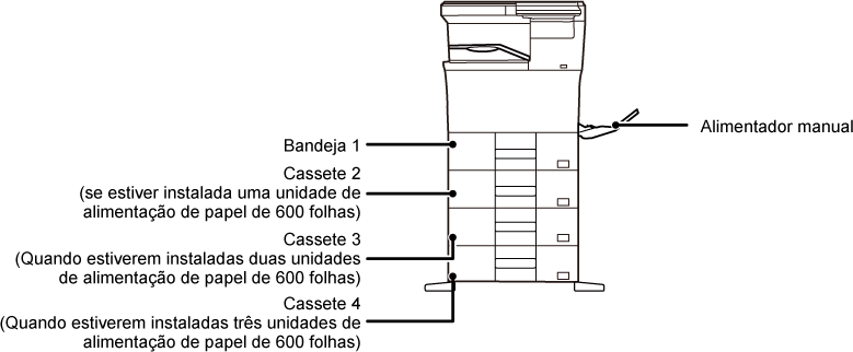 | Cassete | Em estado normal | Com papel carta ou pré-impresso colocado |