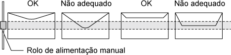 - Poderá não ser possível alimentar envelopes com superfície pouco suave.
