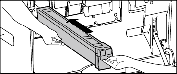 Inserir lentamente o novo cartucho de toner, mantendo-o nivelado.