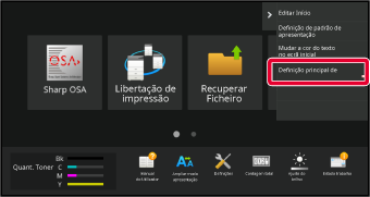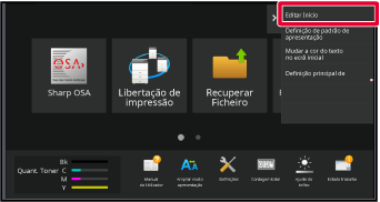 As definições serão guardadas na máquina e aplicadas.Esta secção explica como alterar uma tecla de atalho no ecrã inicial.