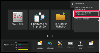 Abrir o painel de ação no ecrã inicial e premir [Mudar a cor do texto no ecrã inicial].