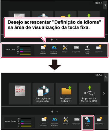 As definições serão guardadas na máquina e aplicadas.Esta secção explica como mover uma tecla de atalho no ecrã inicial.