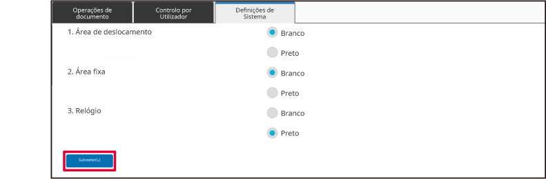 Ao premir a tecla [Submeter], o ecrã [Registo do Ecrã Inicial] é fechado.Finda a configuração das definições, clicar no botão [Submeter].
