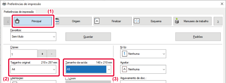 3. Selecione o tamanho de papel real a utilizar na impressão em [Tamanho da saída] (por exemplo: A4).