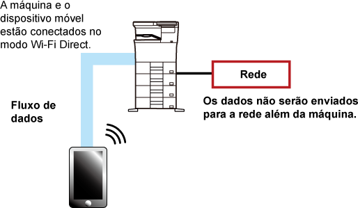 A máquina e o dispositivo móvel comunicam diretamente via Wi-Fi. Neste modo, a comunicação