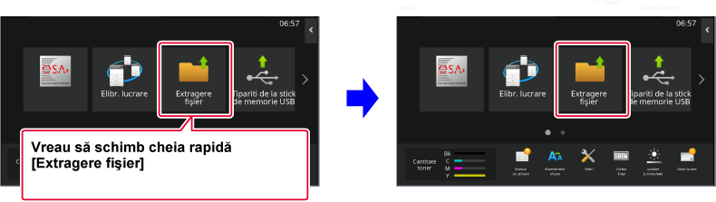 Setările sunt salvate în echipament şi aplicate.Această secţiune explică modul de mutare a unei taste de comandă rapidă în ecranul
