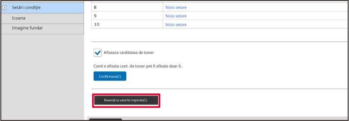 Executaţi clic pe [Setări condiţie] şi apoi clic pe butonul [Revenire la set. implicite].